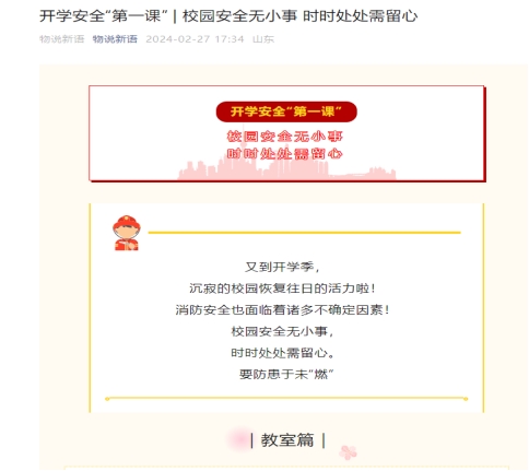为进一步加强校园安全教育管理,提高学生安全意识,消除安全隐患,杜绝学生安全事故,维护新学期校园安全稳定,新学期伊始,星空官方网页版组织开展“开学安全第一课”主题教育活动。